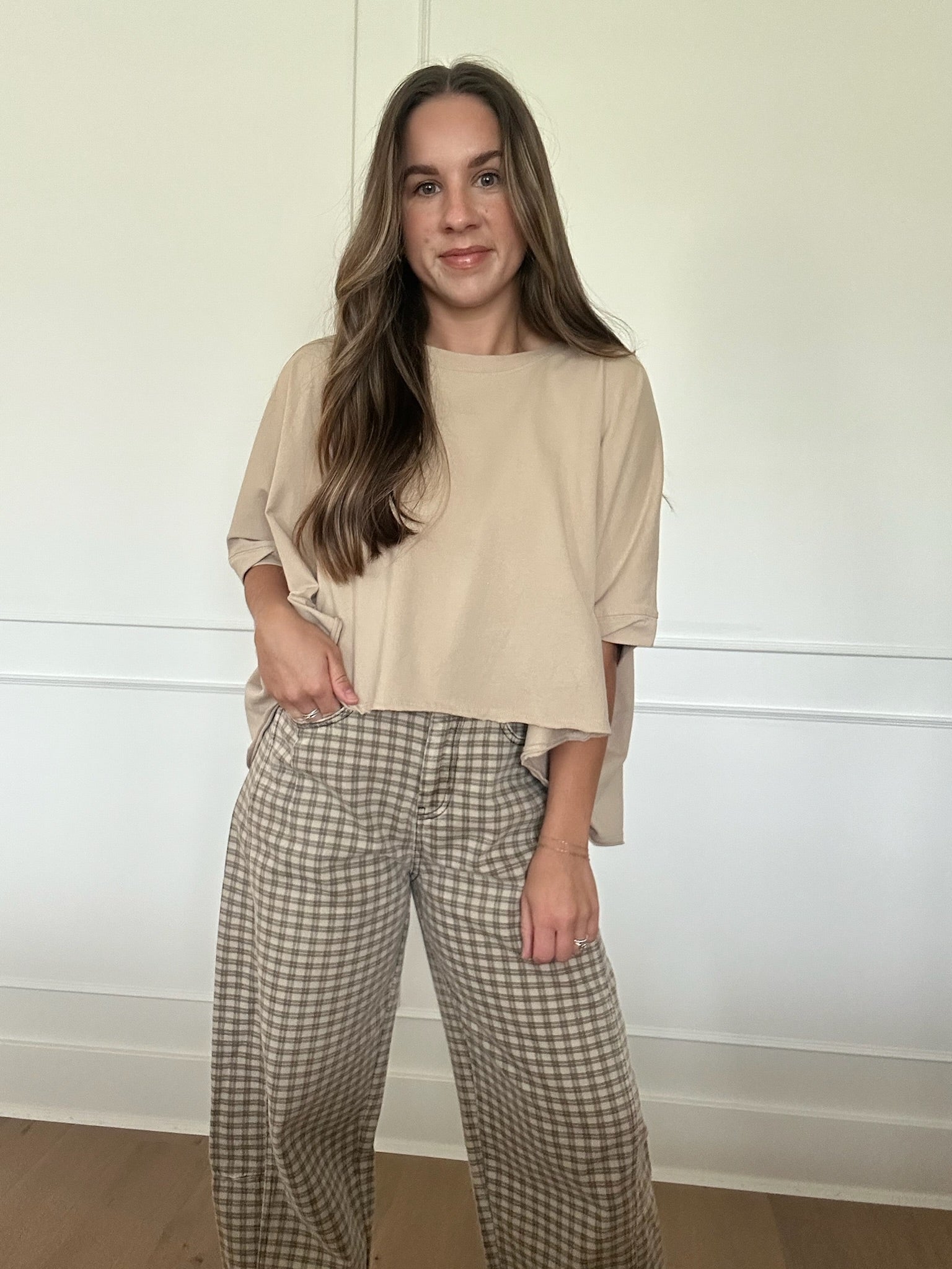 - Oversized beige tee