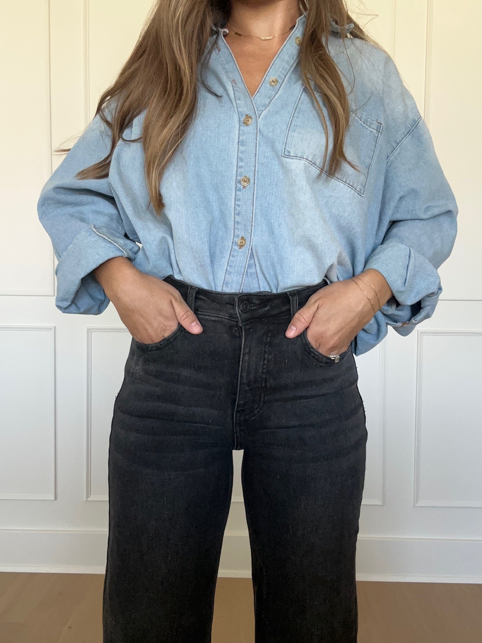 These black high rise ankle wide jeans are classic and the best quality! We love the fitted style with a wide ankle and the little bit of stretch gives these jeans ultimate comfort!