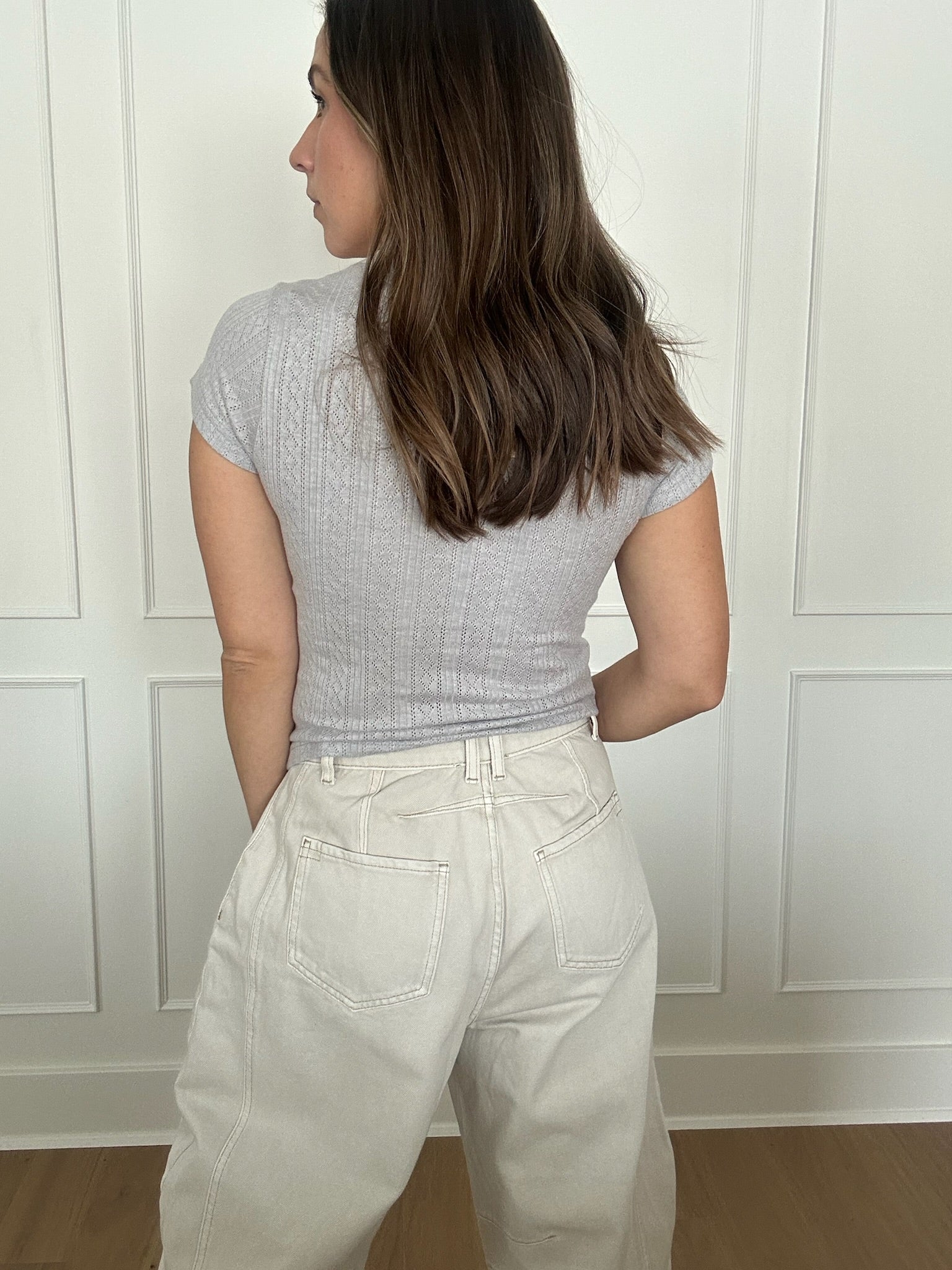 - Pointelle textured basic grey tee